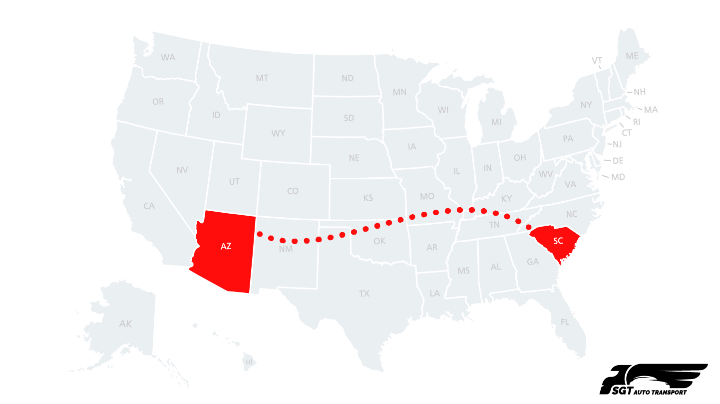 | Major Southwest-to-Southeast Route | Arizona to South Carolina is a well-serviced auto transport corridor connecting the Southwest with the Southeastern United States. |