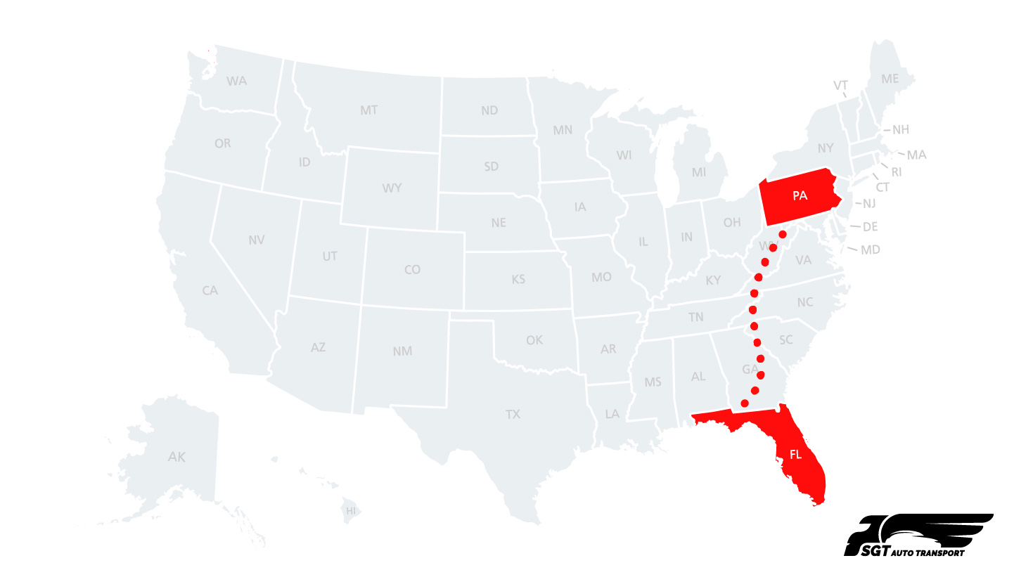 | High-Demand Southbound Route | Pennsylvania to Florida is a frequently serviced auto transport corridor. |