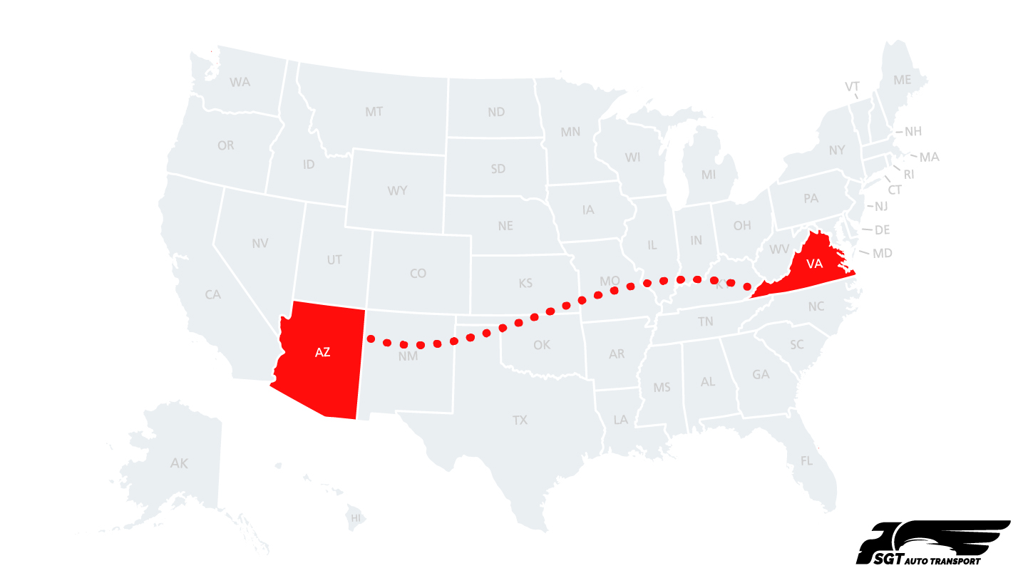 | Major East-to-Southwest Route | Virginia to Arizona is a commonly serviced auto transport corridor connecting the East Coast with the Southwestern United States. |