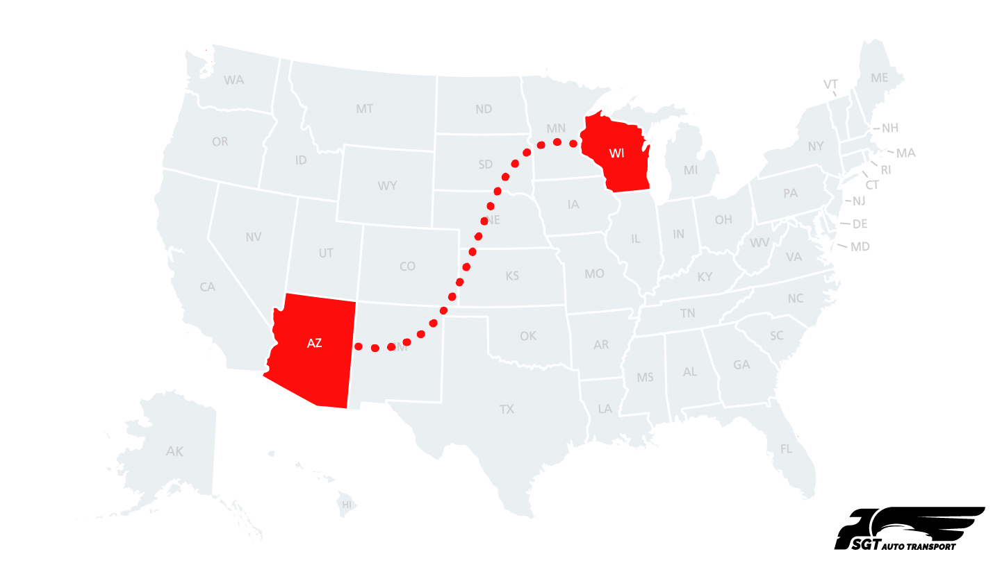 | Popular Midwest-to-Southwest Route | Wisconsin to Arizona is a well-serviced auto transport route connecting the Upper Midwest with the Southwest. |