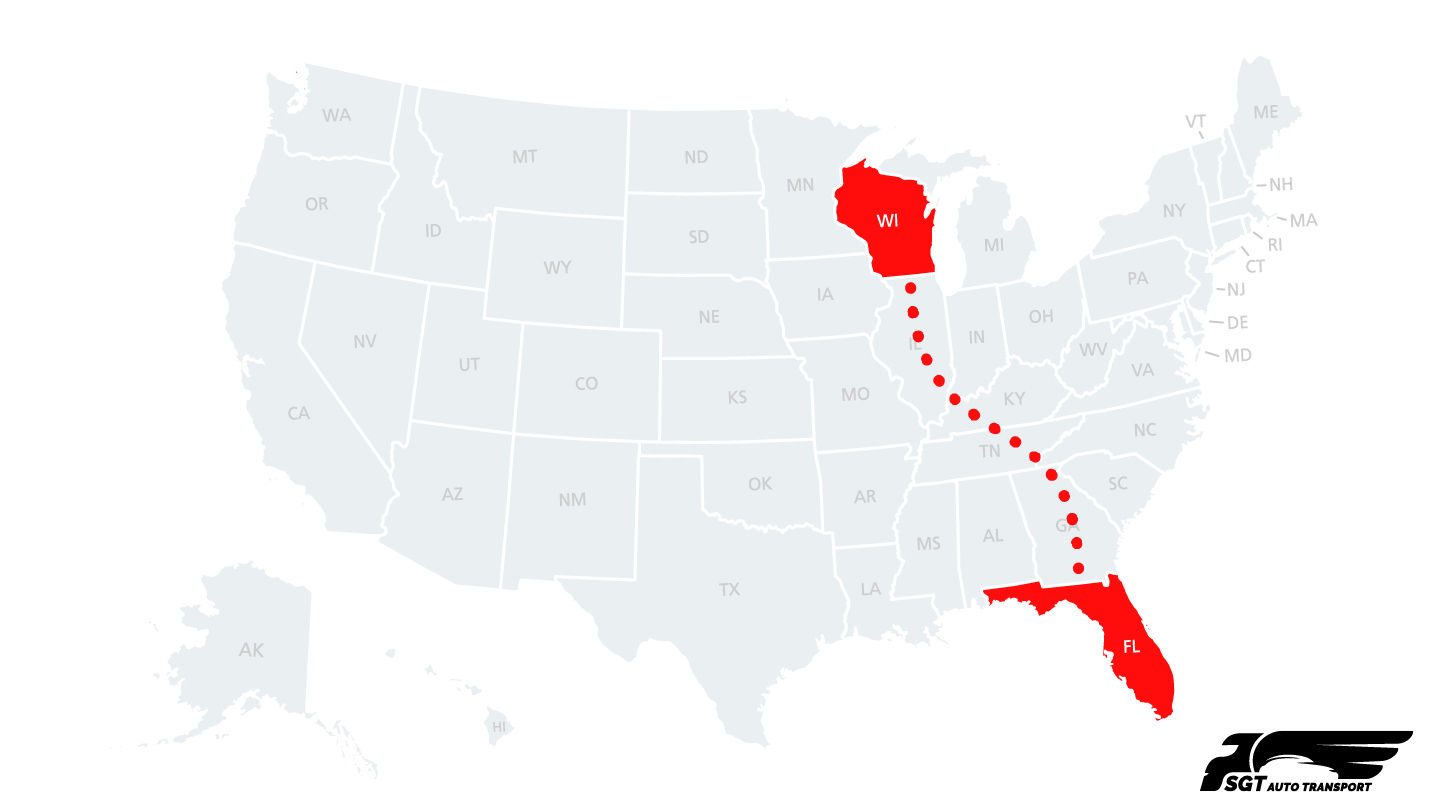 | High-Demand Southbound Route | Wisconsin to Florida is a well-serviced long-haul auto transport corridor. |